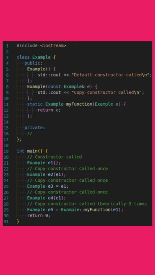⚠️ 𝐋𝐢𝐧𝐞 29: in the example showcases the copy constructor is called three times during the