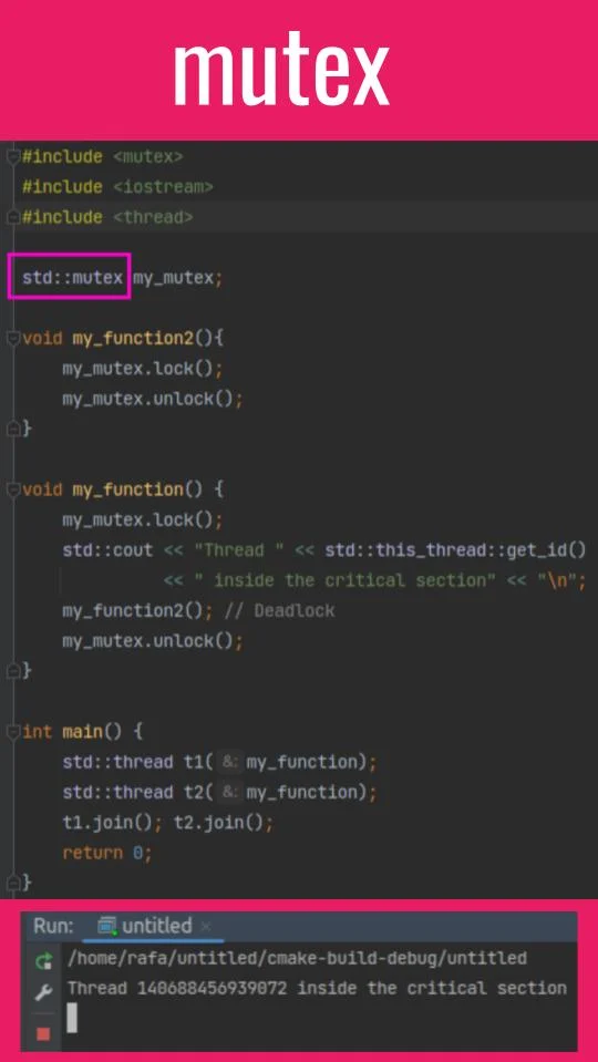 • std::mutex is a non-recursive mutex, which means that it cannot be locked more than once by the same
